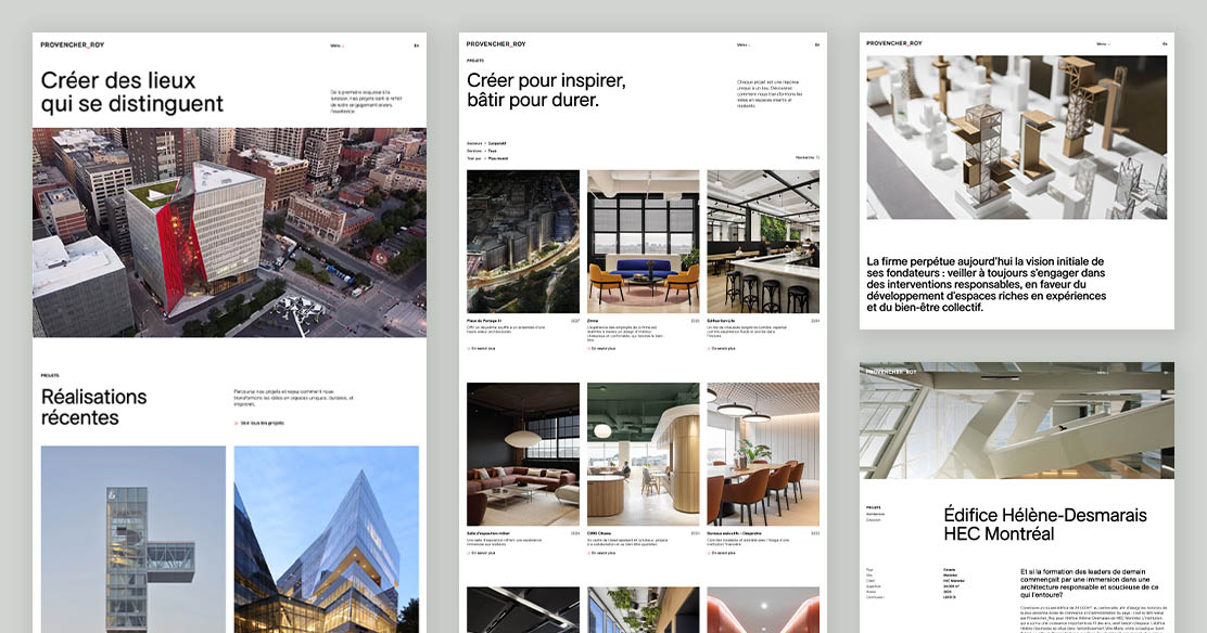 Provencher_Roy tient à remercier l’agence QuatreCentQuatre pour son accompagnement dans cette refonte complète. »