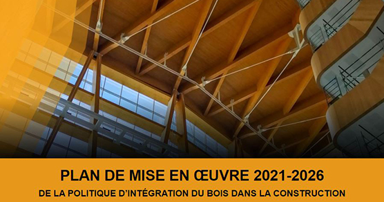 Nous souhaitons vous informer que le ministère des Forêts, de la Faune et des Parcs (MFFP) lance le Plan de mise en œuvre 2021-2026 de la Politique d’intégration du bois dans la construction. Celui-ci comprend 18 mesures, totalisant des investissements de 54,62 M$, lesquelles ont pour but d’assurer l’intégration optimale du bois dans les bâtiments et ouvrages de génie civil publics, parapublics et privés.