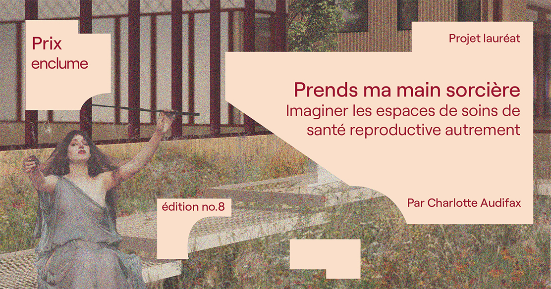 Le prix Enclume édition 2024 est remis à Charlotte Audifax, candidate à la maîtrise en architecture de l’Université Laval pour son essai-projet « Prends ma main sorcière » qui s’intéresse à la prise en charge de la santé reproductive par les institutions médicales ainsi qu’à notre rapport, personnel et collectif, à ce sujet.