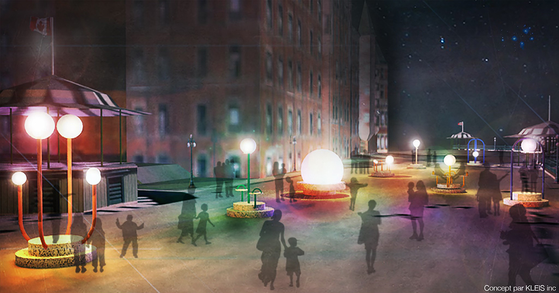 Les finalistes ont offert des propositions uniques et convaincantes. D’abord, un consortium de Québec et Montréal, H2Emotion et Lemay ont offert le projet Field of love, et O2 Design, une équipe de Toronto, ont soumis l’installation Magical Mushrooms.