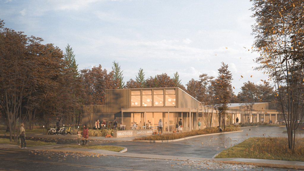 « La Ville de Saint-Colomban est heureuse de dévoiler le projet lauréat de son tout premier concours d’architecture, dans le cadre duquel les équipes pluridisciplinaires candidates devaient imaginer et concevoir la toute nouvelle bibliothèque de la ville.