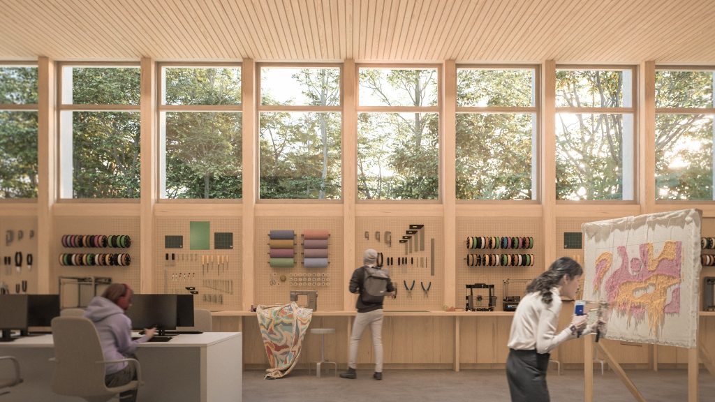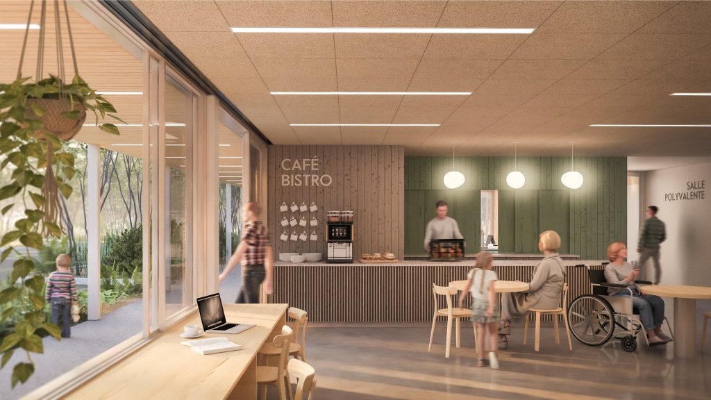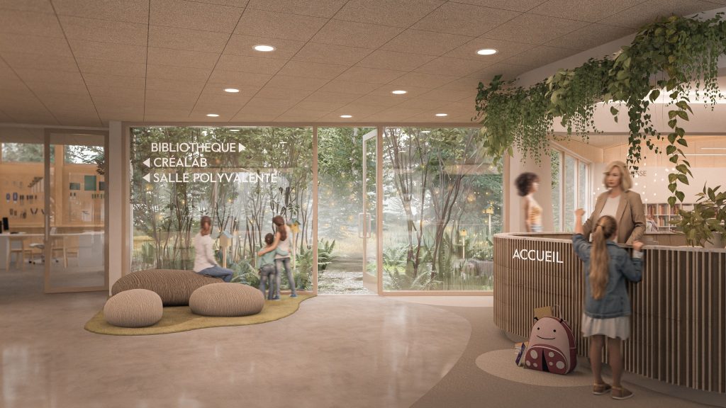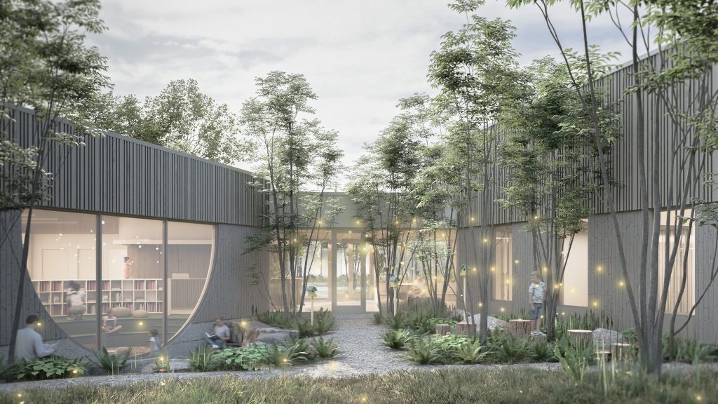La nouvelle bibliothèque prendra place sur l’ancien terrain de soccer Dupont, en face de l’école à l’Orée-des-Bois, où sera créé un lieu à l’influence moderne et à l’intégration environnementale recherchée.