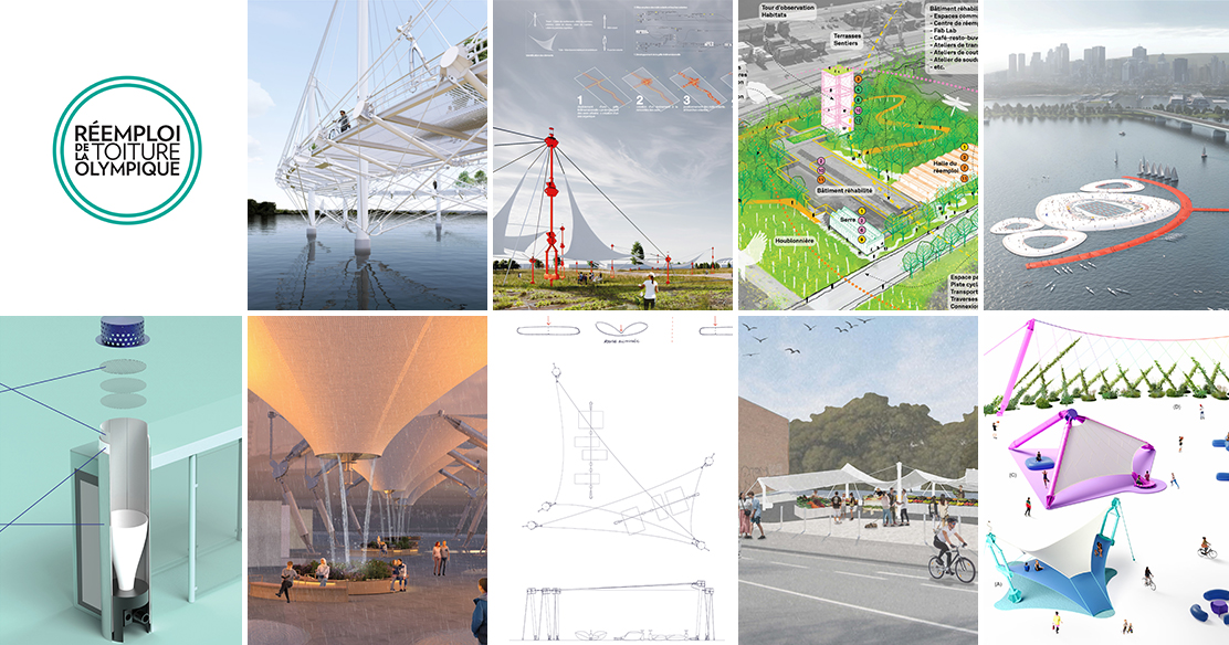 Le détail des propositions lauréates et de la mention peut être consulté sur le site Web du concours : https://reemploi-toiture.parcolympique.qc.ca/