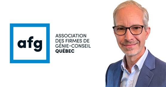 « Montréal, le 7 juin 2021 – M. Beaudoin Bergeron, président du conseil d’administration de l’Association des firmes de génie-conseil – Québec (AFG), annonce la nomination de M. Bernard Bigras au poste de président-directeur général. Il entrera en fonction le 21 juin prochain et succédera ainsi à M. André Rainville, qui prendra sa retraite à la fin du mois.