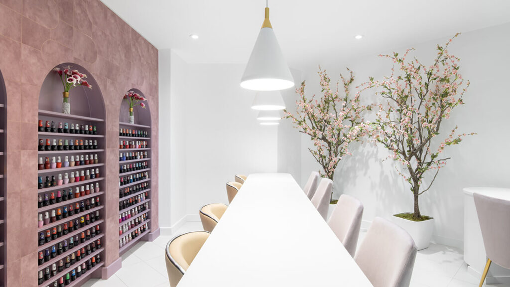 Situé au cœur de Montréal, le salon de manucure Les ongles Diva nails cherche à offrir une nouvelle expérience à sa clientèle. Imaginé par l’agence ISSADESIGN, le projet tend à explorer le thème de la floraison. L’espace est conçu pour offrir à sa clientèle une évasion temporaire de la vie urbaine tout en répondant aux exigences et aux besoins de la personne moderne qui recherche l’agilité et la praticité dans les services de beauté.