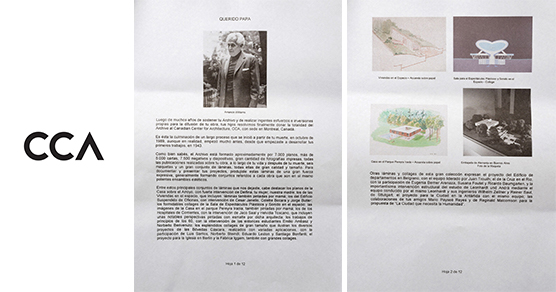 Après plusieurs années à conserver tes archives, à fournir des efforts considérables et à consentir les investissements nécessaires à la diffusion de ton œuvre, tes enfants se sont finalement résolus à donner la totalité des archives au Centre Canadien d’Architecture (CCA), dont le siège social est à Montréal, au Canada. C’est l’aboutissement d’un long processus amorcé à ta mort, en octobre 1989, quoiqu’en réalité, il ait débuté bien avant, quand tu as commencé tes premiers travaux, en 1943. » »