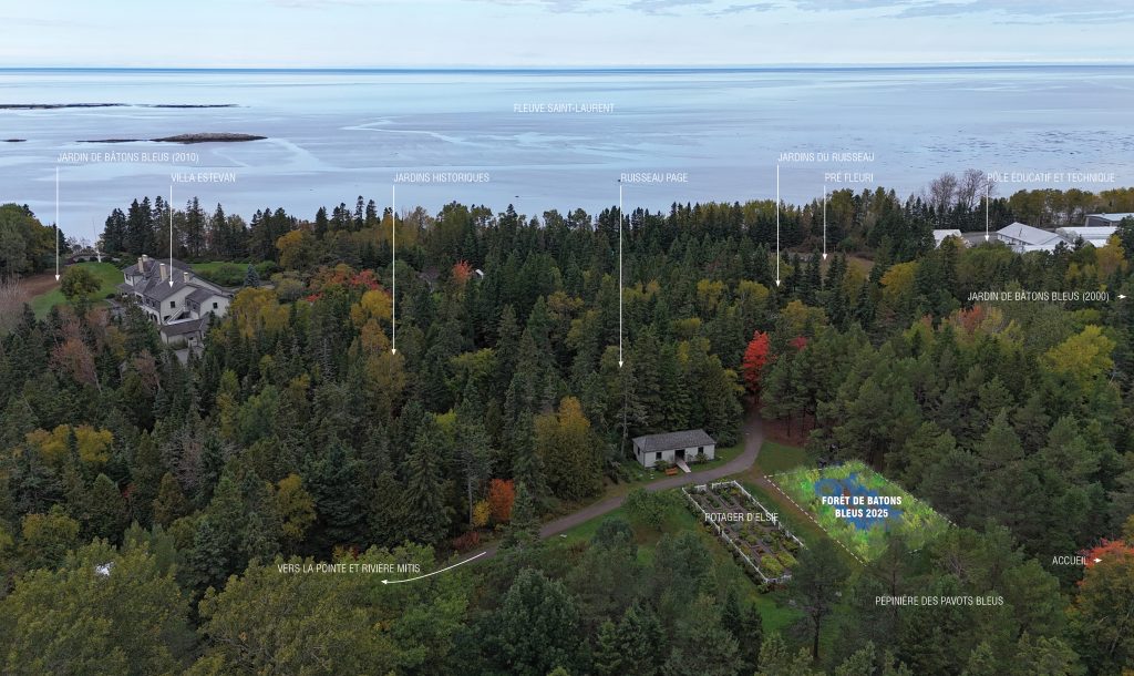 « 4 avril 2025 – Grand-Métis, Québec – Le Jardin de bâtons bleus – créé en 2000 par Claude Cormier (maintenant CCxA) pour la première édition du Festival international de jardins – renaît en Forêt de bâtons bleus aux Jardins de Métis, après 25 années de parcours au Canada et en Angleterre. Le public pourra découvrir cette nouvelle mouture dès l’ouverture de la 26e édition du Festival, le samedi 21 juin prochain.