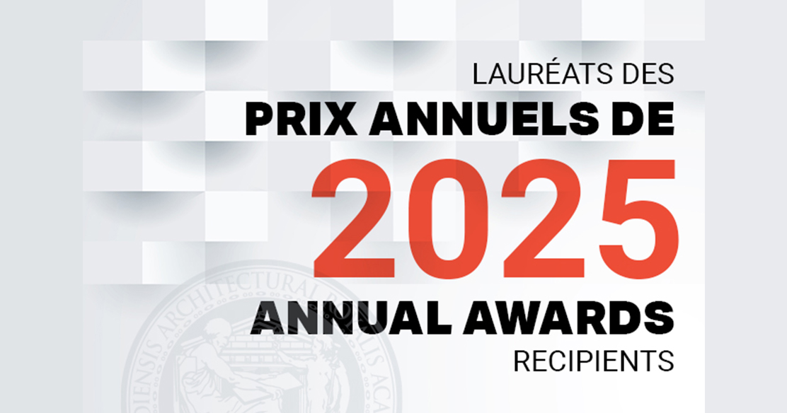 « OTTAWA, le 9 avril 2025 – Nous avons l’honneur d’annoncer les lauréats des Prix annuels de l’IRAC 2025! Allant de contributions durables à l’architecture jusqu’à des ateliers visionnaires, des projets innovants et des initiatives ambitieuses, les lauréats de cette année témoignent du paysage dynamique et évolutif de l’architecture canadienne et révèlent son audace créative et sa réponse aux défis contemporains.