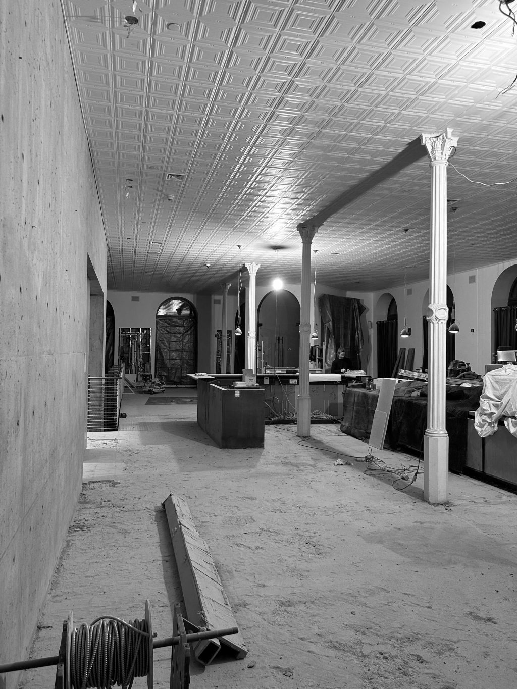 L’intervention de YH2 séduit par sa justesse. Elle repose sur la continuité architecturale, contrant ce réflexe parfois instinctif des concepteurs d’effacer la signature d’origine pour en imposer une nouvelle. Au contraire, plusieurs éléments emblématiques — comptoir principal, luminaires, garde-corps — ont été préservés, offrant une nouvelle lecture à l’intervention initiale du début des années 2000. Un geste sage, à une époque où la retenue devrait primer sur le réflexe de la nouveauté. Ceci est peut-être également attribuable à la qualité de l’aménagement initial.
