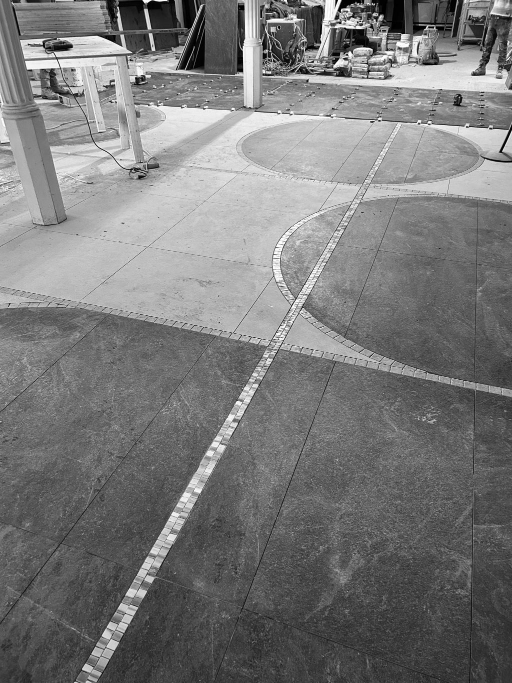 Les ajouts, tels que la voûte d’entrée en bois massif, les motifs de plancher ou le bloc central translucide, s’intègrent avec une grande finesse. Le choix de matériaux nobles renforce l’intemporalité de l’ensemble et témoigne d’une approche durable, sensible et respectueuse du lieu.