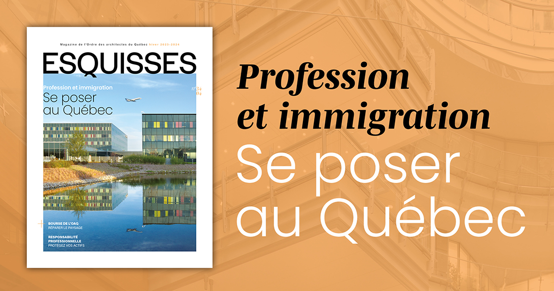 « Dans son dernier numéro de 2023, Esquisses s’intéresse à la réalité des architectes originaires de l’étranger qui souhaitent exercer au Québec. Si leur apport est essentiel pour pallier le manque de main-d’œuvre, il leur faut patienter des mois, voire des années pour faire reconnaître leurs compétences. Heureusement, certains bureaux d’architectes les accompagnent, tandis que l’Ordre et le Conseil canadien de certification en architecture font de leur mieux pour simplifier les processus de reconnaissance des équivalences.