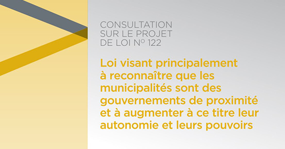 « L’OAQ a déposé un mémoire auprès de la Commission d’aménagement du territoire de l’Assemblée nationale dans le cadre de la consultation d’étude du projet de loi no 122, Loi visant principalement à reconnaître que les municipalités sont des gouvernements de proximité et à augmenter à ce titre leur autonomie et leurs pouvoirs.