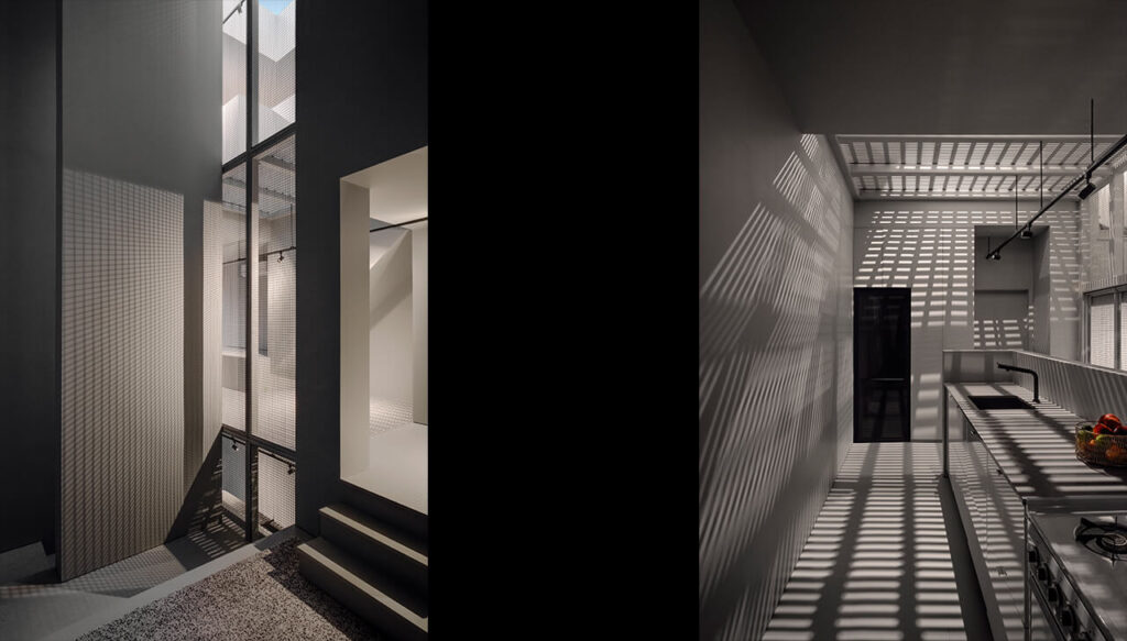 Ce qui intrigue d’autant plus dans l’ensemble, ce sont les contrastes entre l’ombre et la lumière. Comparativement à de nombreux projets contemporains mettant l’emphase sur l’apport de lumière naturelle, MSO semble au contraire vouloir contrôler et jouer avec les ombres, telle l’arrière-scène d’un théâtre… en symbiose avec ses propriétaires issus du milieu culturel !