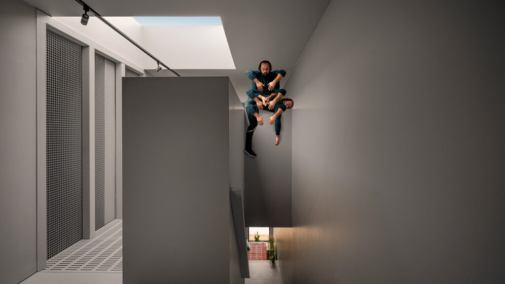 Tout au long du processus, les clients – les créateurs et acteurs Sophie Cadieux et Mani Soleymanlou –, par leur créativité, leur maîtrise de la dimension collaborative inséparable du travail théâtral et leur talent d’improvisation, adoptent avec passion, rigueur et sensibilité la démarche joueuse de l’architecte. Secondé par sa complice, l’architecte Tania Paula Garza Rico, directrice de son studio éponyme, Verville élabore des mises en scène fantaisistes intégrant la présence de créatures-allégories. Devant l’objectif du photographe, les architectes et leurs clients se prêtent à l’exercice avec enthousiasme, humour et imprévisibilité. Avec cette matière première, Verville effectue un travail de manipulation numérique pour fabriquer des images qui suscitent un questionnement sur l’illusoire banalité de l’habitabilité.
