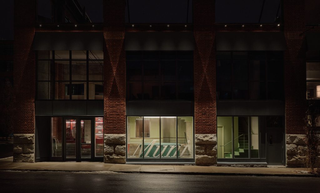 Niché dans l’emblématique bâtiment Nordelec, à l’angle des rues Saint-Patrick et Shearer, Muni est un club de golf intérieur conçu pour offrir une expérience immersive et conviviale. Cet ancien complexe industriel, construit en 1913, constitue un décor saisissant pour ce projet innovant. Sa façade en briques et ses vastes fenêtres laissent place à un intérieur où le béton brut, la structure en acier et les murs de briques apparents préservent l’esthétique industrielle tout en étant adoucis par des interventions chaleureuses et raffinées.