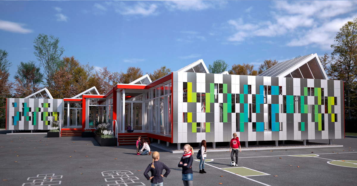 Le designer industriel Charles Godbout m’a récemment contacté pour me présenter une solution fort intéressante qu’il a développée avec l’architecte Luc Plante dans le cadre du concours d’idées L’architecture engagée dans nos communautés, une affaire d’aluminium. Il s’agit d’un système modulaire d’école temporaire en aluminium qui offre un environnement sain, ludique et drôlement plus stimulant pour les enfants que les classes modulaires actuelles.