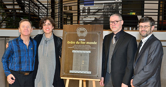 Ordre du fier monde, avec Carol Girard, Soraya Bassil, Jacques Champagne et René Binette, directeur de l’Écomusée, 2014. Photo : Marie-Claude Plasse, Écomusée du fier monde
