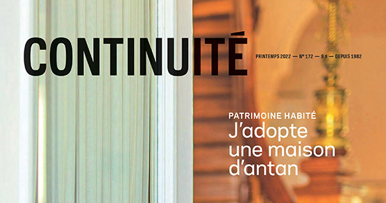 Québec, le 24 mars 2022 | Ce printemps, Continuité donne dans le journalisme de service avec un dossier conçu sur mesure pour les passionnés qui souhaitent adopter une maison d’antan. Pourquoi adopter ? Parce que ceux qui font le choix d’acquérir un bâtiment patrimonial en deviennent les gardiens. En le soignant, ils lui permettent de traverser le temps, avant que quelqu’un d’autre prenne le relais. Nous désirons fournir aux futurs protecteurs de notre legs architectural l’information dont ils auront besoin pour se lancer en toute confiance dans l’achat et la restauration d’une demeure ancestrale. À cette fin, nous chercherons bien entendu conseil auprès de spécialistes du domaine. Mais nous irons plus loin, en recueillant également des témoignages de gens qui ont vécu cette belle et parfois un peu folle aventure. Qui sait, peut-être amènerons-nous certains de nos lecteurs à se découvrir une vocation jusqu’alors insoupçonnée…