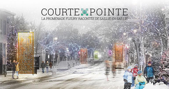 Des quatre projets finalistes, celui présenté par le collectif Giasson Hardy Ianniciello Proulx Tu s’est démarqué du lot et a obtenu les faveurs du jury. Le projet, d’un montant de 255 000 $, consiste en l’installation de quinze « courtepointes » géantes sur les saillies de trottoir de La Promenade, de façon à créer un parcours historique et interactif. La « courtepointe » est une structure de métal filiforme contenant plusieurs centaines de cubes de bois colorés, dont la moitié tournoie au gré de l’expression des passants, leur permettant de dessiner des motifs. Chacune des courtepointes présentent des cubes où se trouvent des informations dévoilant un pan de l’histoire de La Promenade Fleury et du quartier Ahuntsic. La mise en place des structures est prévue au printemps 2017 pour une durée de cinq ans. »