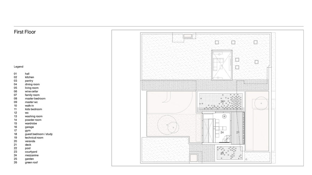 Sur le plan volumétrique, la typologie a de quoi inspirer. À certains égards, sa façade avant opaque, la présence d’un jardin central, l’attention à la distribution des espaces de vie et le bandeau encadrant la vue à l’arrière rappellent la Hooper House II de Marcel Breuer. Le niveau de détails est impressionnant tant à l’extérieur (les jeux de maçonnerie, par exemple) qu’à l’intérieur (portes de rangement encastrées dans le salon), tout comme la tectonique en harmonie avec les divers espaces.