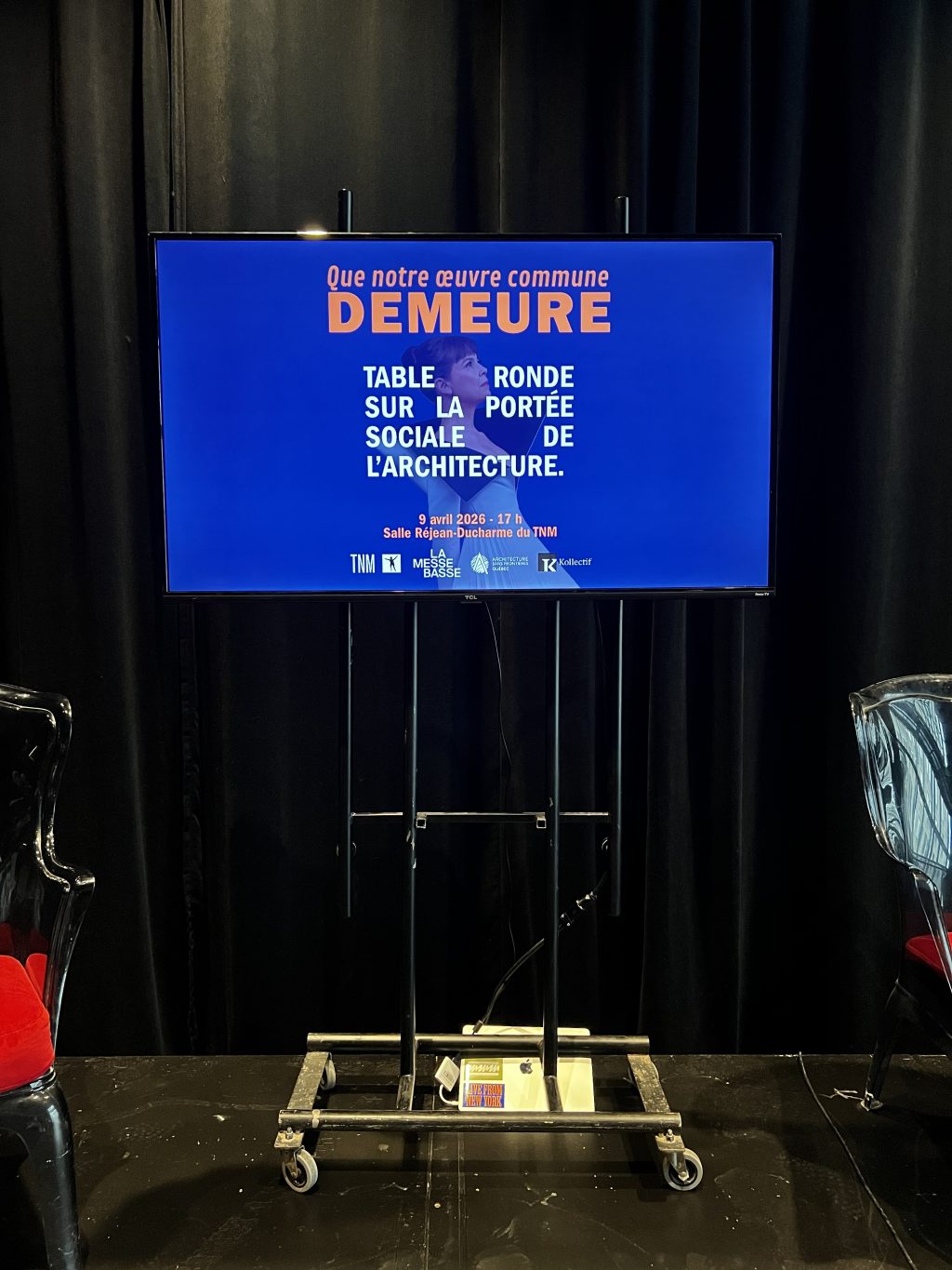 Le jeudi 9 avril dernier devant une centaine de personnes a eu lieu la table ronde « Que notre œuvre commune demeure » organisée par le Théâtre du Nouveau Monde, La Messe Basse, Kollectif et Architecture Sans Frontières Québec sur la portée sociale de l’architecture, en lien avec l’adaptation théâtrale éponyme du roman de Kev Lambert « Que notre joie demeure ».