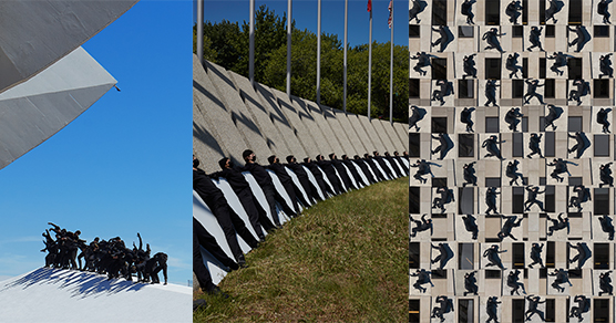 Alors que le professeur et ses collaborateurs invités les soumettent à divers défis pour activer la production d’outils heuristiques, les étudiants élaborent un répertoire de plus de 5000 formes, collages, maquettes, détails et lexiques, sans justification d’origine, de sens ou des multiples interprétations possibles. Réuni en un tableau collectif protéiforme au service d’une appropriation individuelle, cet assemblage habilite à vérifier des observations, à revendiquer des intuitions, et à provoquer des fantaisies. Collectivement, le groupe détermine un dispositif performatif simple, rapide et économique à fabriquer, qui servira de support à la réalisation de propositions distinctes. Loin d’assimiler les individualités, ce dispositif collectif invite chacun à élaborer une performance chorégraphique contribuant à une réflexion sur la ville, ses parcours, son architecture et ses espaces publics. Chacune des performances, livrée à l’interprétation du groupe d’étudiants, devient un matériau supplémentaire à l’exploration et à l’expérimentation. De la multitude d’images, chaque étudiant effectue sa propre transposition narrative participant à une constellation de visions qui témoigne de la profusion des perceptions.