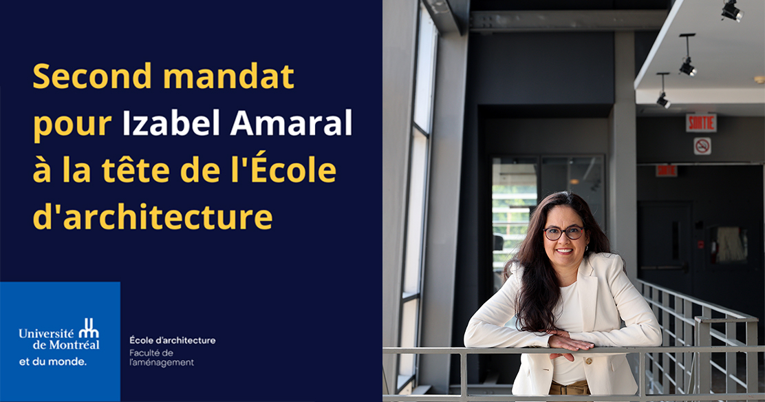 La Faculté de l’aménagement est fière d’annoncer le renouvellement du mandat de Mme Izabel Amaral à la direction de l’École d’architecture pour un second mandat de quatre ans, qui est entré en vigueur le 1er juin 2025.