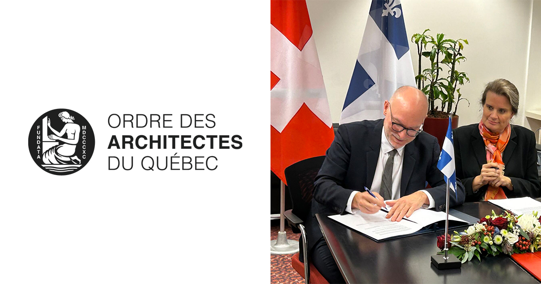 « La Secrétaire d’État suisse, Martina Hirayama, et Pierre Corriveau, président de l’Ordre des architectes du Québec, ont signé un arrangement de reconnaissance mutuelle (ARM) sur la profession d’architecte.