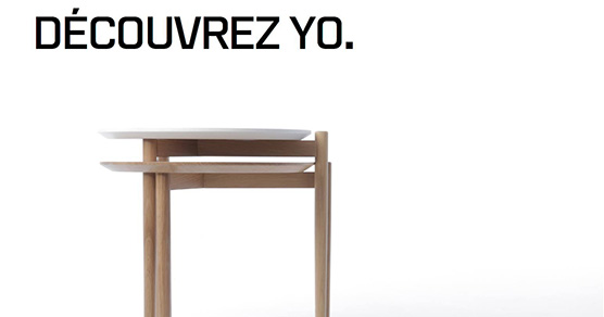 Entièrement fabriquées de chêne blanc d’Amérique, les tables YO. présentent une flexibilité idéale pour des pièces de séjour grandes ou petites. De fines pattes fuselées supportent un mince plateau qui semble planer au dessus de la structure. Le système d’emboîtement permet de relier plusieurs tables de différents formats. Un percement circulaire du plateau procure un ancrage pour l’une des pattes de la table supérieure. Les tables gigognes s’empilent et se déploient au besoin. Les tables à café se lient pour constituer des combinaisons inédites, rappelant les ensembles mathématiques. »