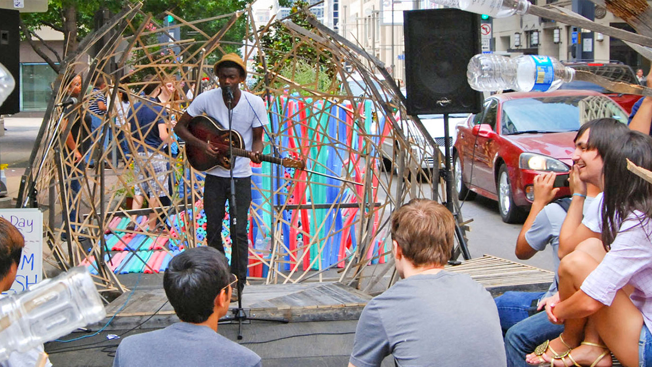 La firme Blouin Tardif Architectes faisait vibrer les passants avec leur installation musicale.
