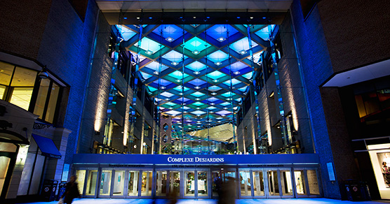 « Solution d’éclairage sur mesure amène un environement dynamique au Complexe Desjardins.