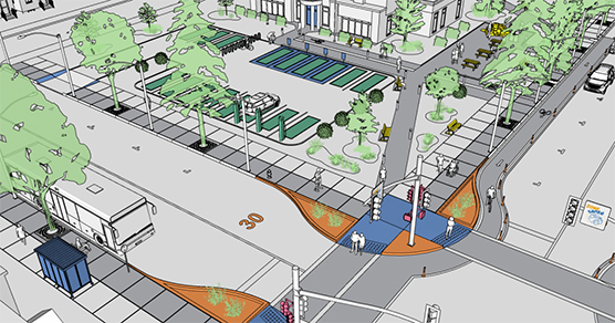Inspiré de la zone scolaire, le concept de la zone santé propose d’aménager les abords des installations de santé de manière sécuritaire et conviviale afin de favoriser le vieillissement actif. Avec près de 30 % de la population qui aura plus de 65 ans en 2066, l’aménagement des milieux de vie se doit d’être adapté pour que les personnes aînées puissent se déplacer à leur guise et en sécurité, demeurer actives et autonomes, et participer socialement à la vie de leur communauté.