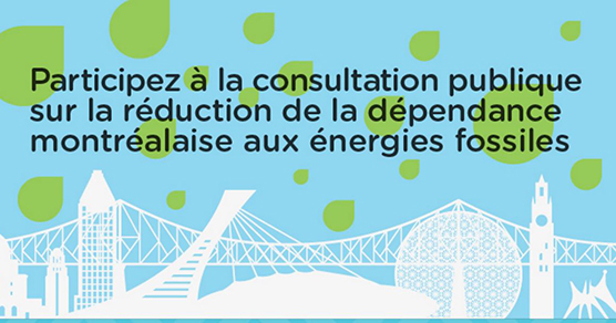 « Nous sommes heureux de vous inviter à la soirée de reprise de la consultation sur la réduction de la dépendance aux énergies fossiles le 1er février, à 19 h, à l’OCPM (1550, Metcalfe, 14e étage).