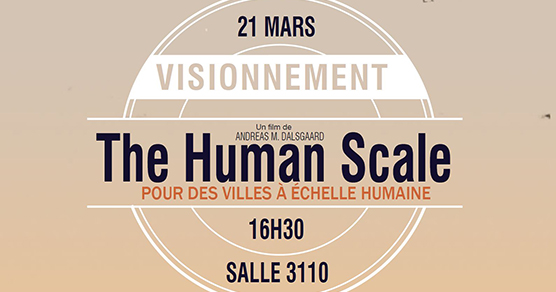 « L’École d’urbanisme et d’architecture de paysage vous invite à la projection du film « Pour des villes à échelle humaine ».