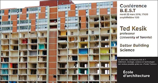 L’École recevra Ted Kesik, professeur en Science du bâtiment à l’Université de Toronto et instigateur des conférences B.E.S.T. à Toronto.