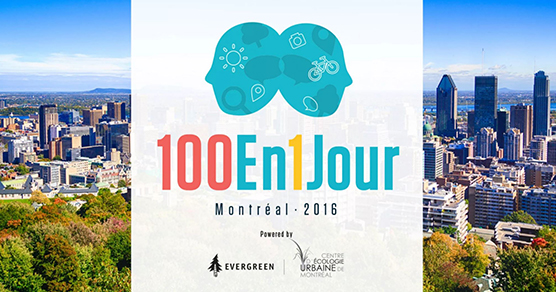 « L’événement propose aux montréalais de repenser la ville et de la transformer en réalisant 100 actions urbaines ou plus en 1 jour, dans l’espoir que certaines donneront lieu à des changements durables. De l’installation d’un banc dans un lieu public à la mise en place de cordes à linge créatives, toutes les idées sont bonnes pour transformer notre ville! Consultez la plateforme web interactive de 100En1Jour pour y ajouter votre action ou planifier votre itinéraire pour la journée!