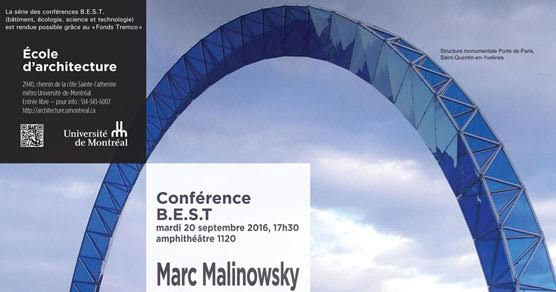« L’École d’architecture de l’Université de Montréal a le plaisir de vous inviter à la prochaine conférence de la série B.E.S.T. (Bâtiment, Écologie, Science et Technologie) le mardi 20 septembre 2016 à 17h30, amphithéâtre 1120