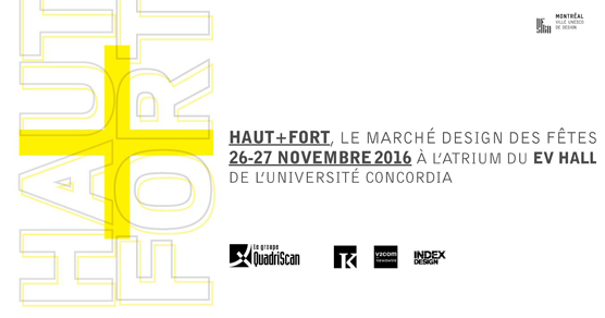 La 5e édition de l’événement HAUT+FORT – Le marché design des Fêtes s’installe à nouveau au EV Hall de l’Université Concordia. Les 26 et 27 novembre, venez faire vos emplettes des Fêtes au marché qui exhibe ce que le design québécois a de mieux à offrir !