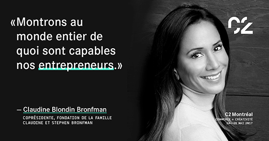 « Montréal, le 28 février 2017. – Grâce à leur esprit visionnaire, les entrepreneurs vivent chaque jour la collision entre commerce et créativité. C’est pourquoi, pour une 6e année consécutive, la Fondation de la famille Claudine et Stephen Bronfman offre à 25 entrepreneurs québécois l’occasion de participer à l’expérience C2 Montréal.