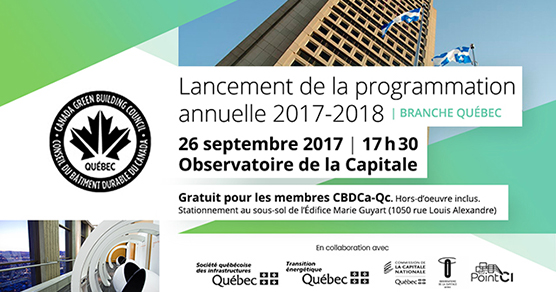 « La Branche de Québec du CBDCa-Qc a le plaisir de vous inviter au lancement de sa programmation annuelle 2017-2018 qui aura lieu à l’Observatoire de la Capitale le 26 septembre prochain à partir de 17h30.
