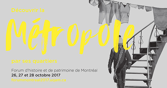 « Le 19 octobre 2017 – Dans le cadre du 375e anniversaire de la fondation de Montréal, le Laboratoire d’histoire et de patrimoine de Montréal de l’UQAM et les Archives de la Ville de Montréal présentent, du 26 au 28 octobre prochain, le Forum d’histoire et de patrimoine de Montréal. Découvrir la métropole par ses quartiers. Cet événement a pour objectif de faire connaître aux Montréalais la richesse des quartiers de la ville à travers des initiatives novatrices, élaborées tant par la communauté que par le milieu académique.