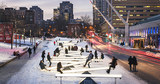 « Montréal, le 22 novembre 2017 – Le Partenariat du Quartier des spectacles est heureux d’accueillir de nouveau l’œuvre IMPULSION, dans le cadre de la 8e édition de Luminothérapie, du 30 novembre 2017 au 28 janvier 2018. Après avoir visité plus d’une douzaine de villes dans le monde, dont Londres, Bruxelles et Chicago, et ravi des millions de personnes, cette installation hivernale composée de 30 bascules lumineuses et sonores transformera une fois de plus la place des Festivals en un vaste terrain de jeux.
