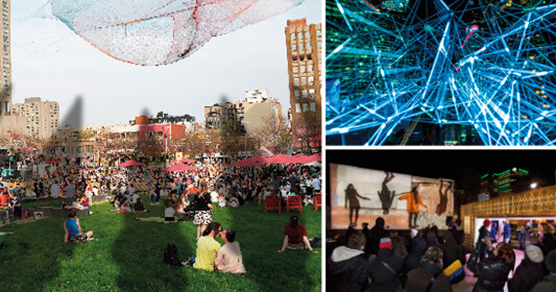 Le Partenariat du Quartier des spectacles met sur pied des concours et des appels de projets visant à encourager la créativité locale et à favoriser l’émergence de nouvelles pratiques artistiques dans l’espace public, particulièrement dans le domaine des installations urbaines et de l’art numérique.