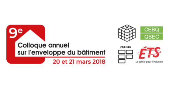 « Le Conseil de l’enveloppe du bâtiment du Québec (CEBQ), en collaboration avec le magazine FORMES et l’École de technologie supérieure (ÉTS), invite les architectes, les technologues au service des bureaux d’architectes, ainsi que les autres intervenants de l’industrie de la construction au 9e Colloque annuel sur l’enveloppe du bâtiment qui aura lieu les 20 et 21 mars 2018 à l’École de technologie supérieure.