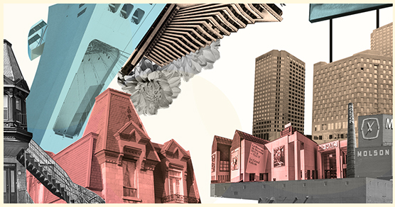 C’est à travers un collage réalisé sur un dispositif lumineux et mettant en scène différents éléments architecturaux et bâtiments montréalais iconiques que vous pourrez créer votre ville fictive, votre Montréal imaginé. Réinventez la métropole à travers 4 thèmes :