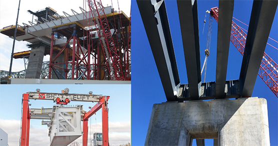 Approchant rapidement à sa date de mise en service prévue de décembre 2018, ce grand pont comportera six voies de circulation routière, deux voies dédiées à un système de transport léger sur rail (SLR) et une piste multifonction. D’une longueur de 3,4 km, le pont se distingue par des piles ayant des chevêtres unique en forme de « W », un pont à haubans distinctif et complexe doté d’une travée principale de 240 m et un pylône de 159 m d’hauteur servant à franchir la voie maritime du Saint-Laurent. En tenant compte d’un ouvrage complémentaire, à savoir un nouveau pont de l’Île des Sœurs qui sera également complété à l’été 2018, une superficie de tablier d’environ 193,000 m2 sera construite ce qui représente le plus grand pont au Canada.