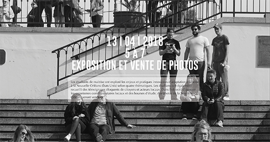 « Gonzalo Lizarralde, Isabelle Thomas, Lisa Bornstein, Thomas Schweitzer, Amy Oliver, Samy Snoussi et Nathalie Francès, ont le plaisir de vous inviter à une exposition de projets et photos le 13 avril 2018.
