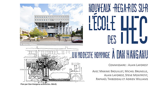 Six photographes d’architecture, crème de la profession au Québec, donnent de l’École des hautes études commerciales leur vision de ce qui est, sans doute, le chef-d’œuvre de Dan Hanganu, vingt ans après sa construction (en consortium avec Jodoin Lamarre Pratte architectes). Tout en fournissant une belle réflexion sur la photographie d’architecture en soi, cette exposition propose de revisiter une œuvre d’architecture majeure qui demeure, encore aujourd’hui, difficile à cerner, voire énigmatique, aux yeux des critiques… Mais ô combien appréciée par ses usagers, au quotidien !