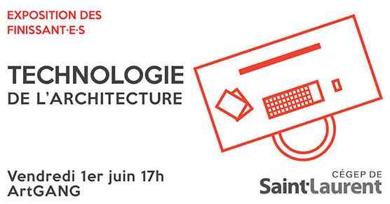 « Les finissant·e·s de la TECHNOLOGIE DE L’ARCHITECTURE du CÉGEP DE SAINT-LAURENT vous convient à l’exposition de leurs projets de fin d’études qui aura lieu en formule 5@7 le VENDREDI 1ER JUIN au ARTGANG PLAZA (6524, rue St-Hubert).