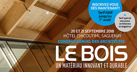 « L’OAQ vous donne rendez-vous à Saguenay les 20 et 21 septembre 2018 pour son congrès annuel qui portera sur le bois, un matériau innovant et durable.